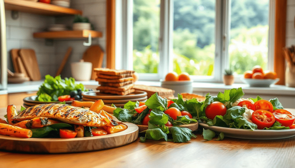 For easier meal prep, start with weekend prep routines. Use mix-and-match components for varied meals. Incorporate plant-based and heart-healthy options.